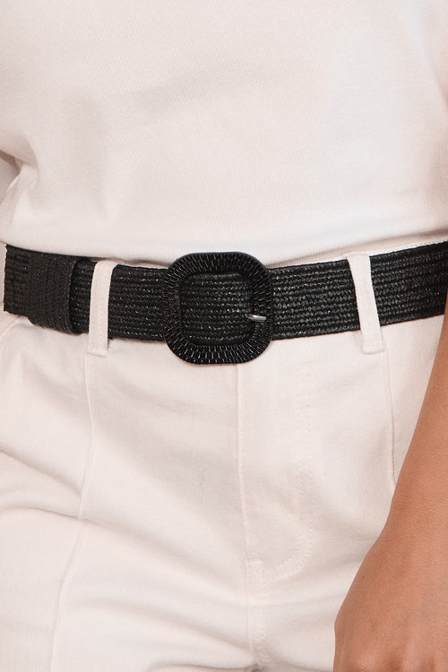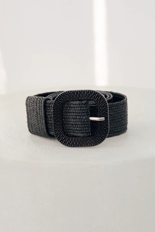 ADRIFT STRETCH BELT IN BLACK RAFFIA O/S