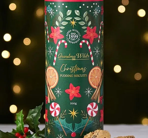 GRANDMA WILD'S CHRISTMAS PUDDING BISCUITS TUBE 200g