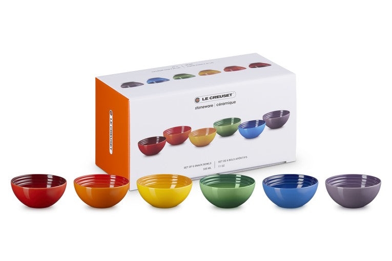 LE CREUSET STONEWARE RAINBOW SET OF 6 SNACK BOWLS