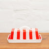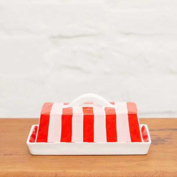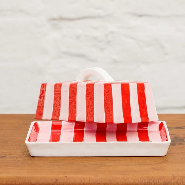 NOSS & CO LARGE BUTTER DISH - RED & PINK STRIPE