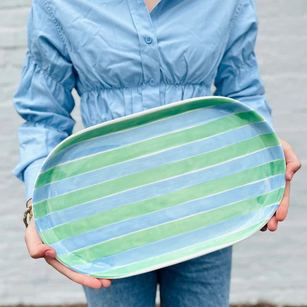 NOSS & CO OVAL PLATTER - PINK & GREEN STRIPES