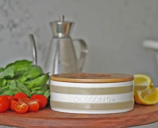 Australia’s oldest family-owned and operated salt producer, Olsson’s, has launched two new products; Salt Keeper and Pinch Pot. Crafted with the same attention to detail as Olsson’s beloved striped jars and designed to hold any of Olsson's premium salts, these new storage solutions have been designed to bring style and functionality to the home kitchen and bar.