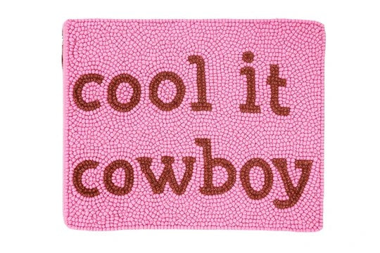 The Magic Pudding TamworthThis charming 13.5x9.5cm coin purse features playful pink beads spelling out COOL IT COWBOY, adding a fun touch to your essentials. Its secure zipper closure keeps your coins safe while making it easy to access them on the go. Perfect for adding a pop of personality to your everyday carry!