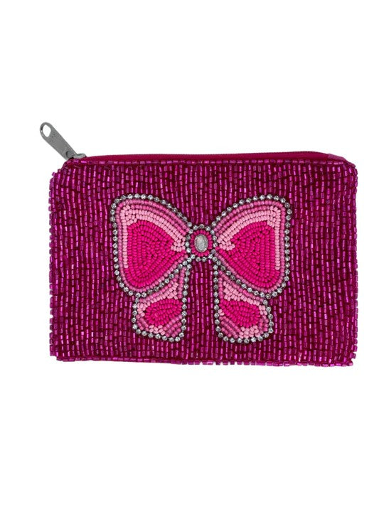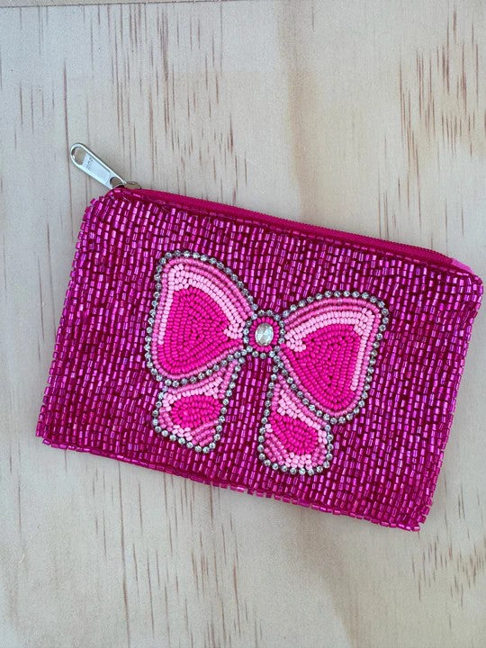 MINK & ME COIN PURSE - PINK BEADED BOW