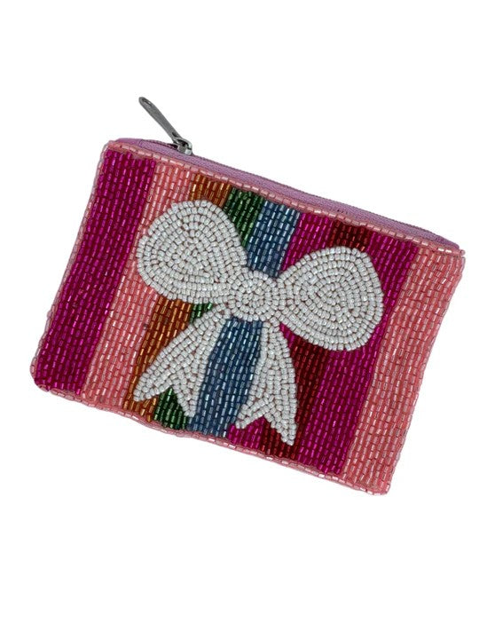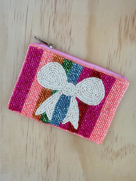 MINK & ME COIN PURSE - RAINBOW STRIPE BEADED BOW