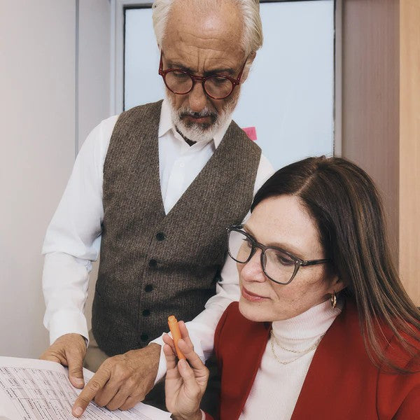 Lightweight, flexible reading glasses in shape D. Limited edition Office Playground collection.