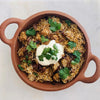 9. Stir through the nuts (optional), toss through the coriander, garnish with the remaining onions, star anises and cinnamon stick.  Serve with a side of yoghurt.  Enjoy!