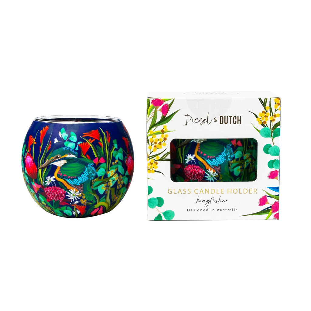 DIESEL & DUTCH GLASS TEALIGHT CANDLE HOLDER - KINGFISHER