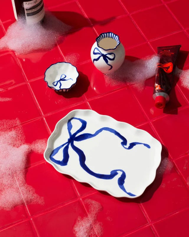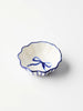 Scalloped edges rise to meet careful brush strokes of indigo blue in this petite earthenware dish. Designed in Sydney and hand-painted in Vietnam, the Margot Dish cradles your most precious objects rings, earrings, while its ribbon-like decoration transforms average spaces into sanctuaries of whimsical beauty.