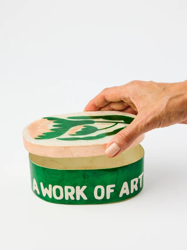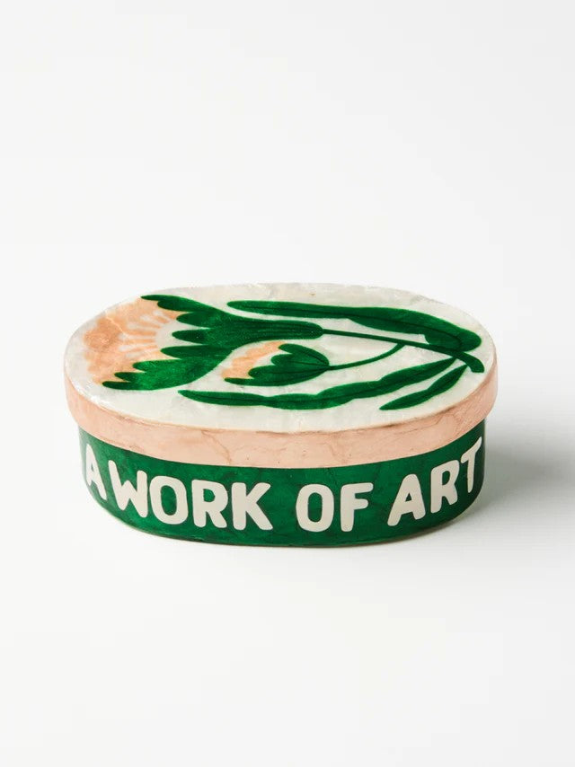 The Magic Pudding TamworthA modern floral motif washes across this generously sized Capiz shell box, creating a luminous vessel for treasured objects. Designed in Sydney and meticulously crafted by skilled artisans in the Philippines, each piece celebrates the natural iridescence of the shell through thoughtful pattern and colour. So much so we inscribed "work of art" on the side. Perfect for storing jewellery and mementos.