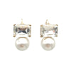 GREENWOOD DESIGNS MAGGIE CLEAR RECTANGULAR CRYSTAL WITH PEARL EARRINGS