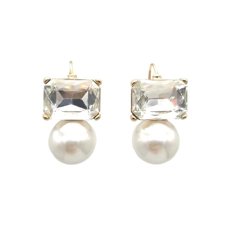 The Magic Pudding TamworthGREENWOOD DESIGNS MAGGIE CLEAR RECTANGULAR CRYSTAL WITH PEARL EARRINGS