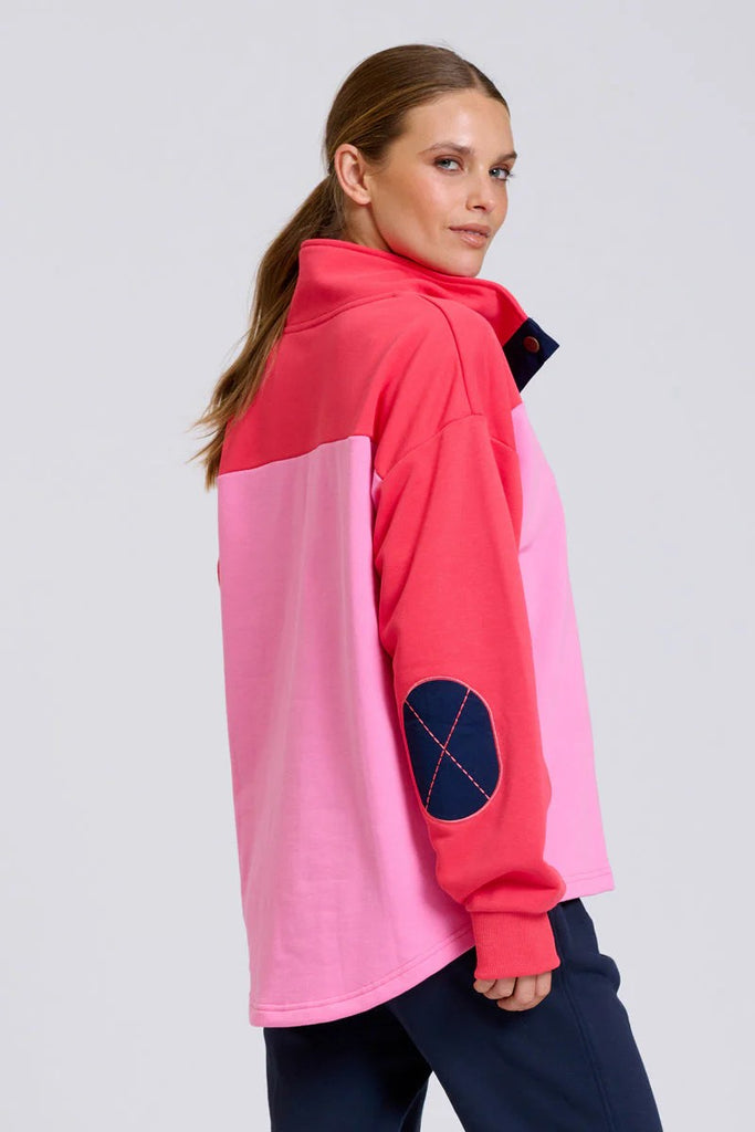 EST 1971 COLLAR SWEATSHIRT - PINK & RED COMBO