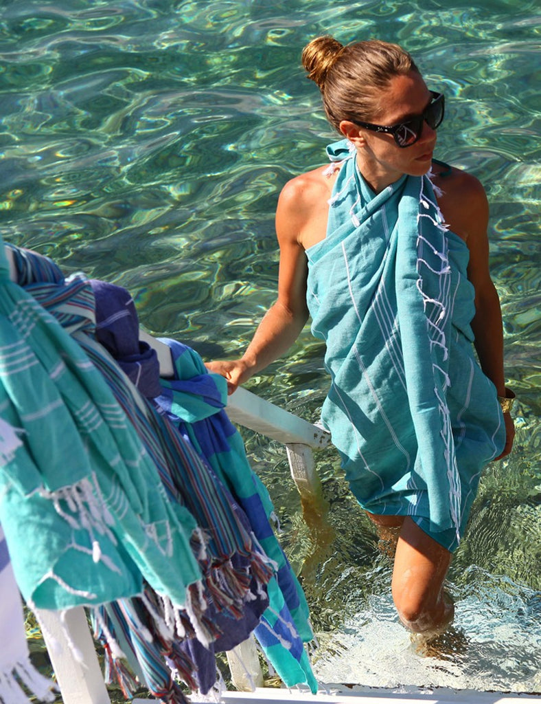 Hammamas are great travel towels because they are compact and also transform into a sarong and beach dress.