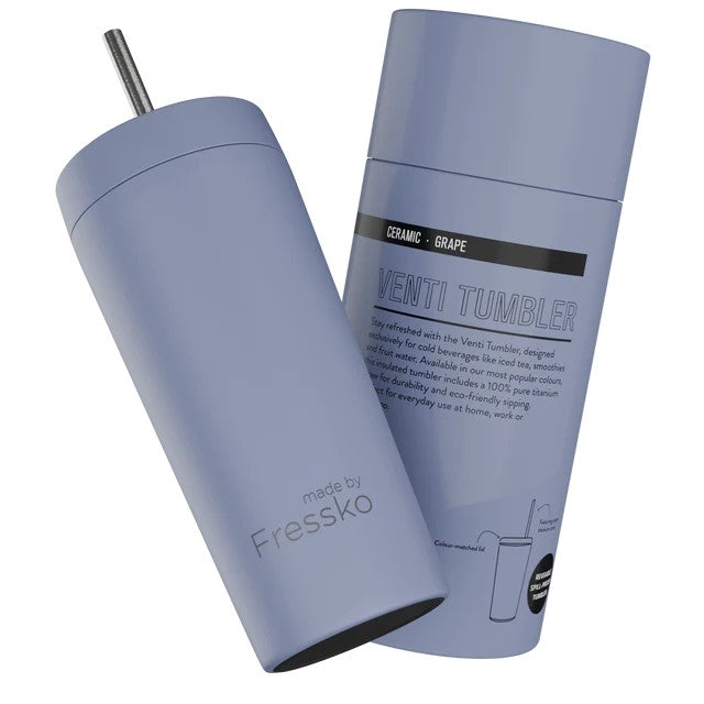The Magic Pudding TamworthSip long with the Venti Tumbler, designed exclusively for cold beverages like iced tea, smoothies, and fruit water. Available in eight popular colours, this insulated tumbler in grape includes a 100% pure titanium straw for durability and eco-friendly sipping. Perfect for everyday use at home, work, or on the go.
