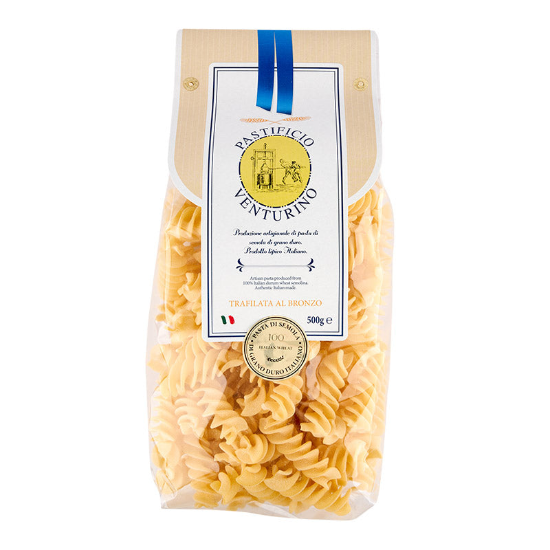 For many generations, Pastificio Venturino has been producing top quality artisan pasta in southern Italy using only the best Italian durum wheat and traditional techniques. The slow drying process at low temperature is important for the preservation of texture, colour and taste. The rough porous texture of the finished product is ideal in combining any flavouring or sauce.