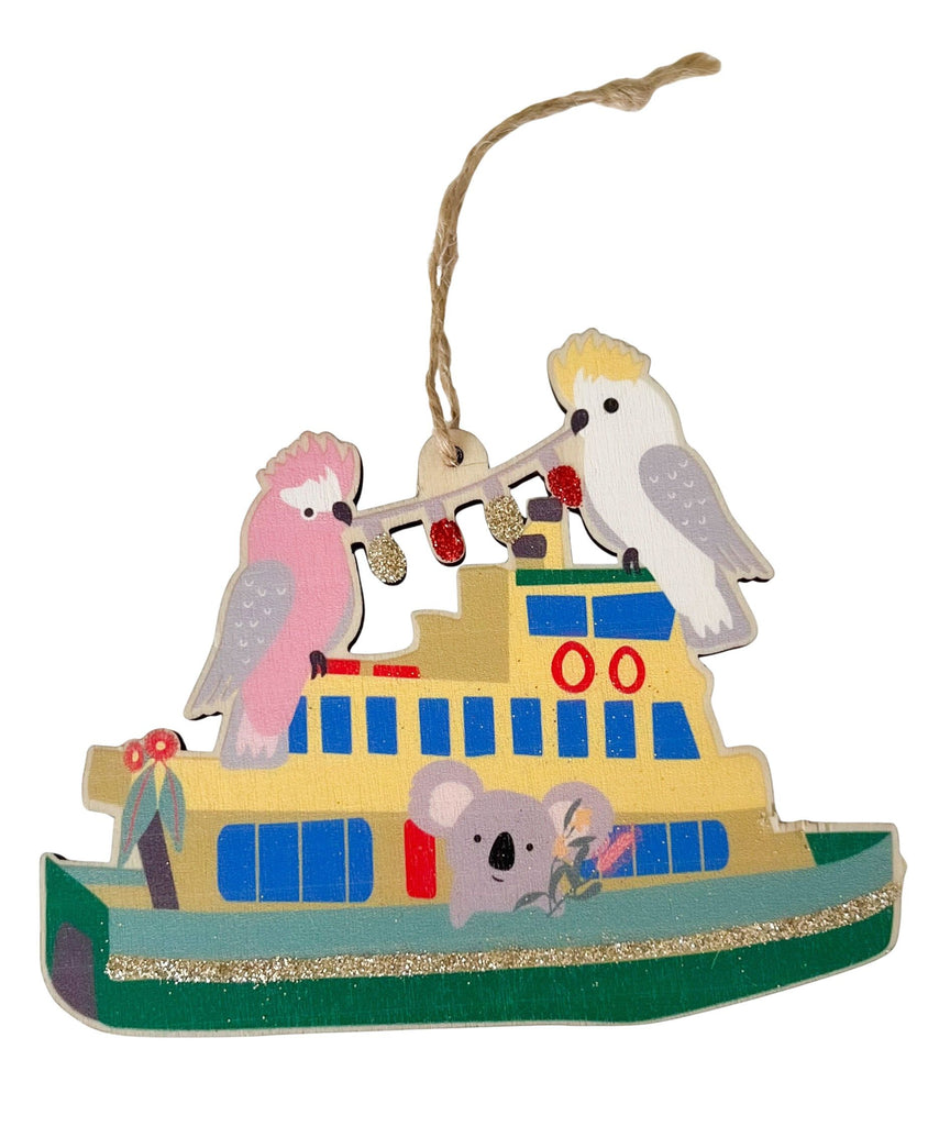 Add a playful Australian touch to your festive décor with the Oz Animals with Ferry Hanging Decoration. Crafted from sturdy MDF and finished in a cheerful green with yellow details, this charming ornament features beloved Aussie animals enjoying a classic ferry ride. Measuring 11 cm, it's the perfect size to brighten your Christmas tree, mantle, or holiday display. Lightweight, durable, and full of character, this unique decoration brings a whimsical coastal twist to the season. In stock now and ready to join your celebrations.