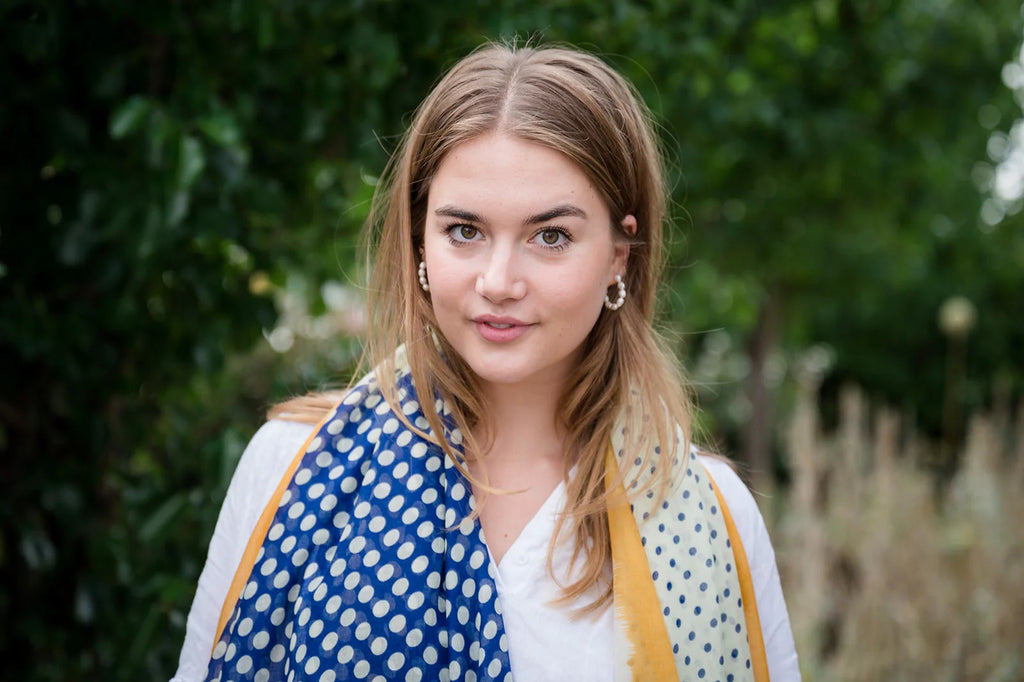 The blue and off-white colour combination is fresh and modern, making this scarf the perfect accessory for a wide range of outfits and occasions.