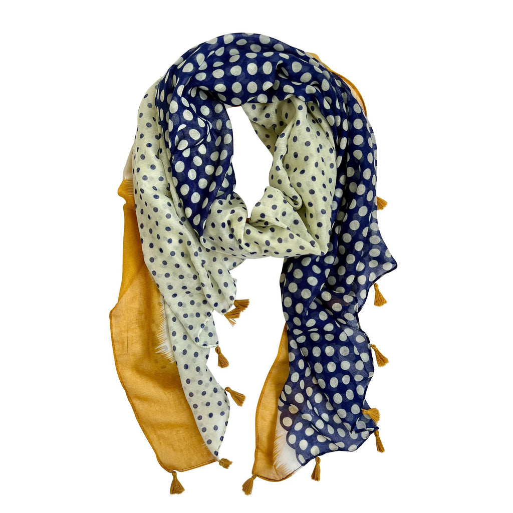 The Magic Pudding TamworthThis blue and off-white spot scarf is a stylish and versatile accessory that will add a touch of sophistication to any outfit.