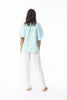 The Magic Pudding TamworthESCAPE BY OQ LINEN SOLID TOP CHINESE COLLAR WIDE SLEEVE - ISLAND SKY
