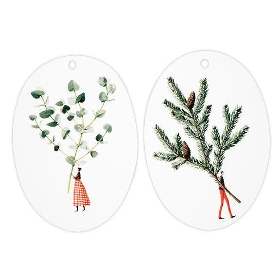Featuring Laura's beautiful new Christmas designs Spruce and Eucalyptus, these gift tags will smarten up the smallest of Christmas presents on their own or with the matching paper. The oval tags can be attached with the enclosed black and white twine twine. There are twelve in a pack, six of each design.
