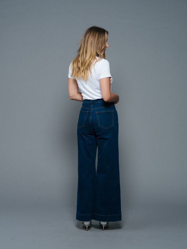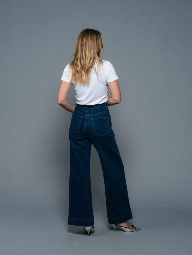 Designed with a flattering high waist and a modern wide-leg cut, they create a long, confident line while remaining easy to wear. Finished with refined stitching and a timeless wash, these jeans transition seamlessly from everyday styling to more elevated looks.
